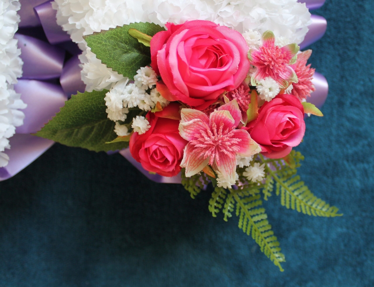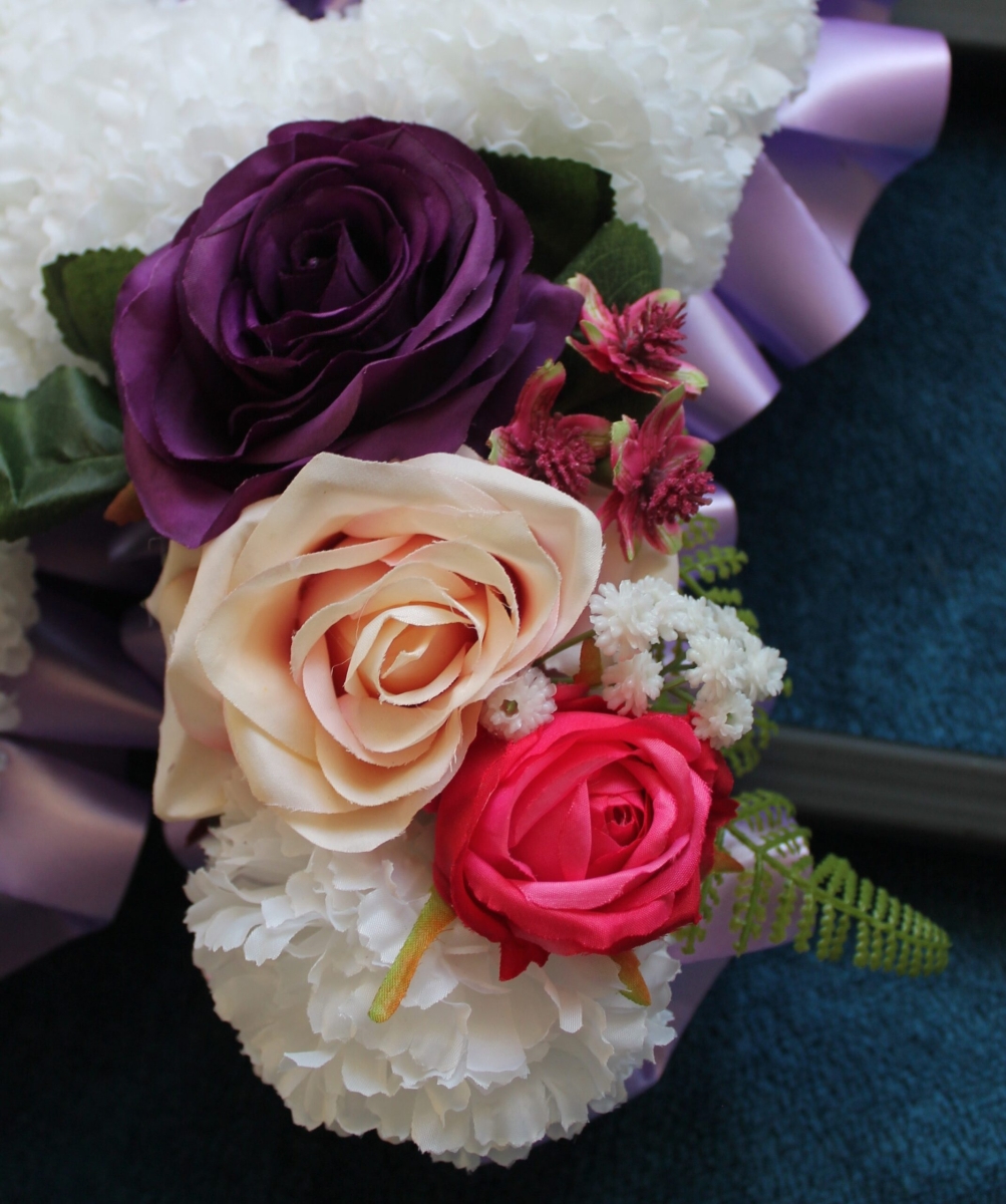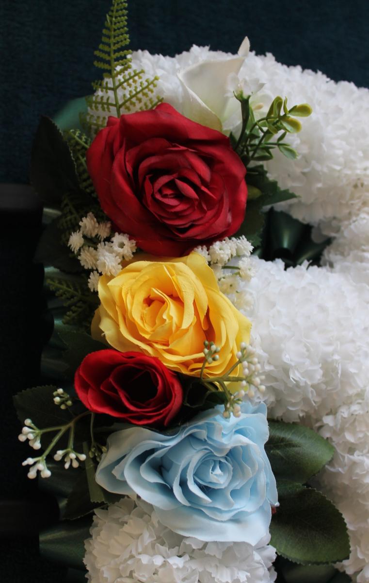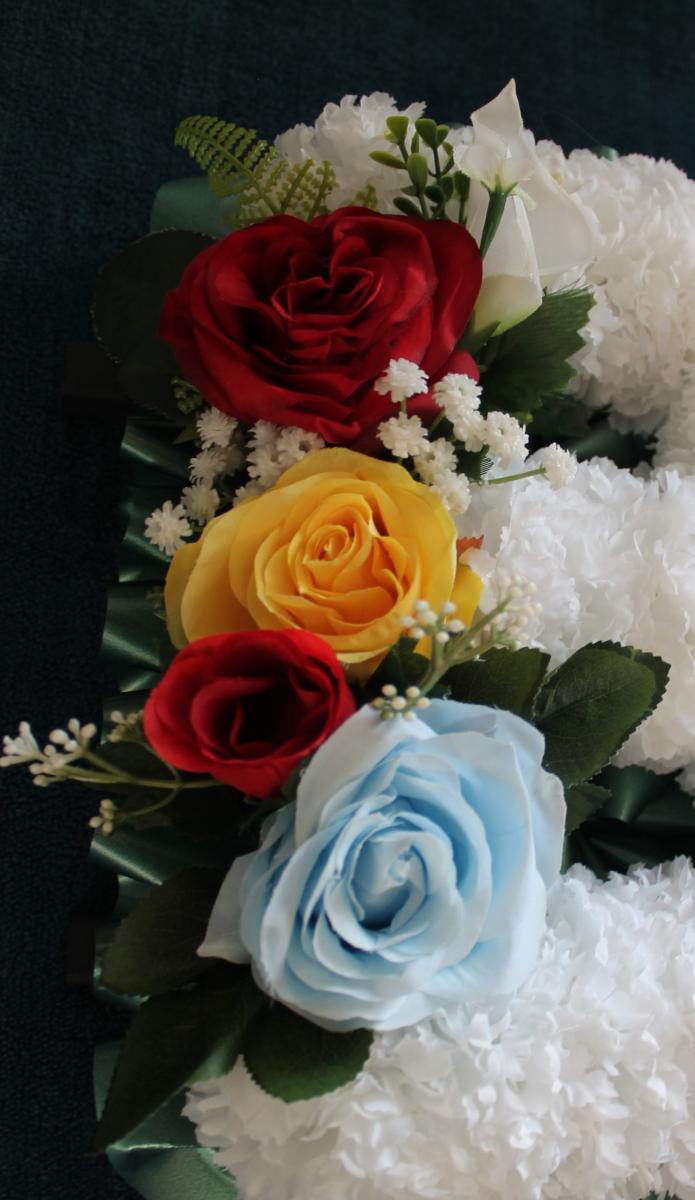 If you would like one of the tributes below with different colour ribbon and/or flowers they are £70 each.